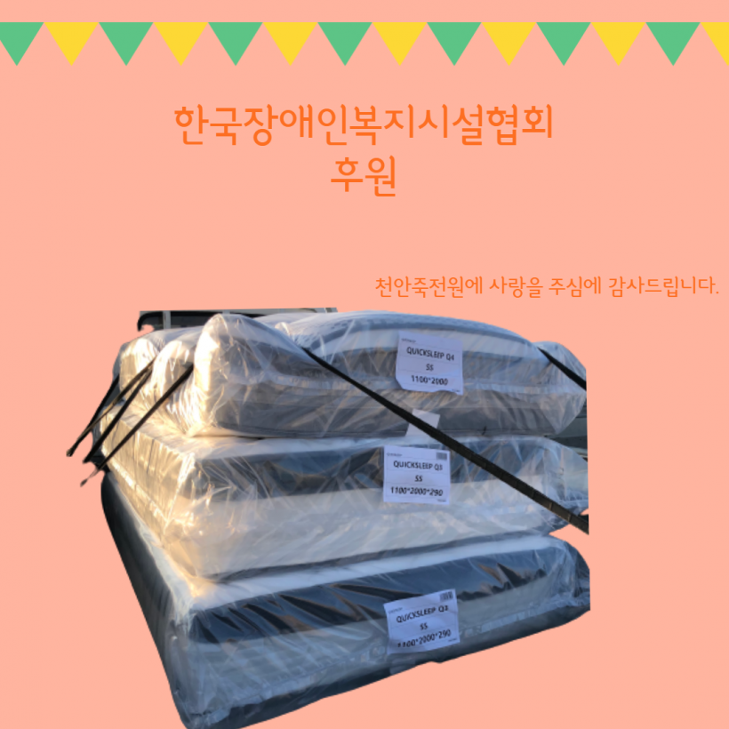 [후원] 한국장애인복지시설협회 페이지 정보 작성자 운영자 작성일21-12-09 11:15 조회337회 댓글0건 관련링크 목록 본문 2021.12.08.(수)한국장애인복지시설협회 주체로 (주)아모스침대에서 매트리스 지원을 해주셨습니다.감사합니다 :) 댓글목록 등록된 댓글이 없습니다. 목록