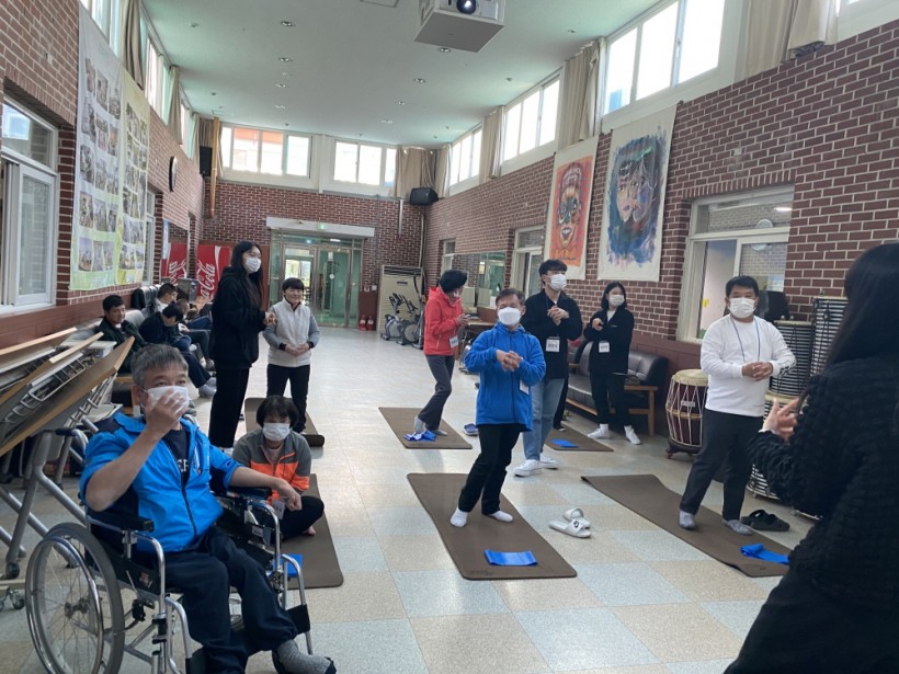 이번 주도 죽전원에 방문하여 거주인들과 체조와 춤 연습을 하셨습니다.
