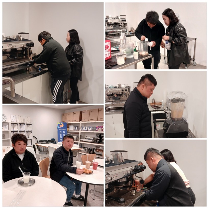 오늘은 단초롭게 2명이 참여하여 여유있게 여러가지 제품을 만들어 보았습니다. 커피를 내리는 임*재 님, 이*한 님 집중하는 모습이 아주 인상 깊네요.