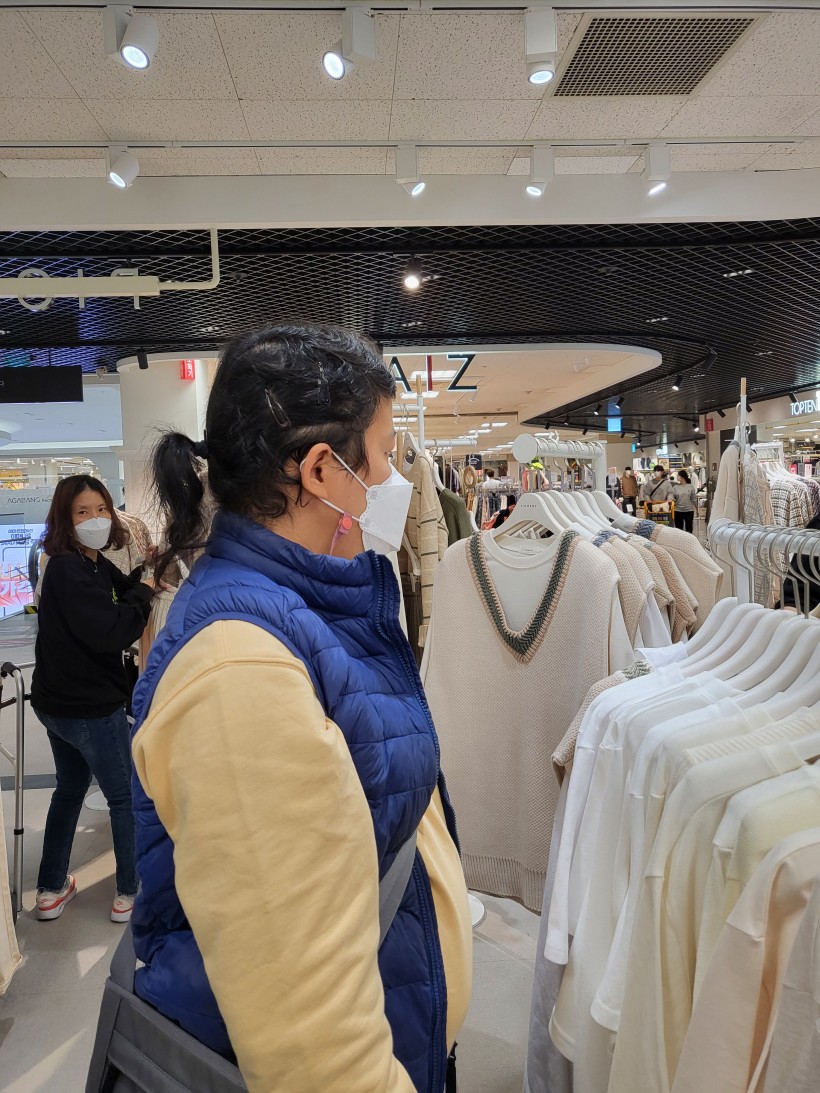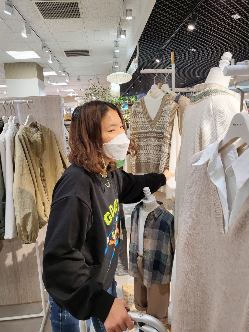쌀쌀해진 날씨 탓에 새로운 옷을 구매하러 나왔습니다.