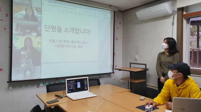 방역수칙을 준수하여 소수의 봉사자만 참여하고, 다른 봉사자들은 비대면을 통하여 자기소개를 진행하였습니다.