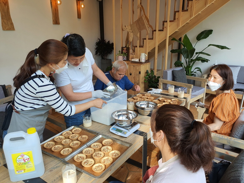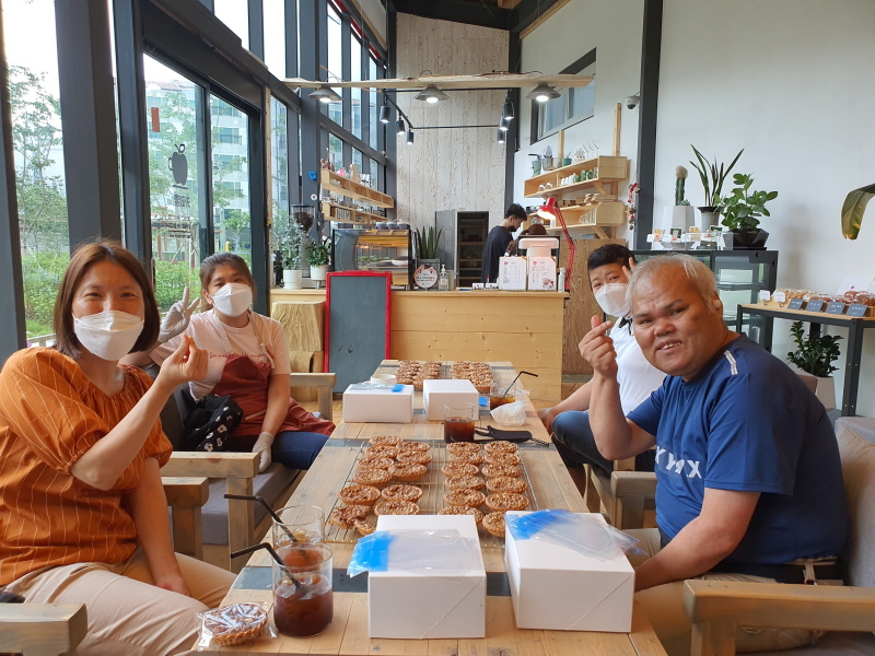 내 용 : 주말에 취미활동을 하고 싶은 우리 가족들은 다가동에 위치한 카페내에 방문하여 베이킹 교실에 참여하였습니다. 총 8회차로 진행되는 이번 활동에서 10일, 처음 멋진 사장님의 수업을 통해 카페내의 인기 간식인 호두파이를 만들어 보았답니다. 직접 만들어 보아 더욱 맛있었던 호두파이! 앞으로 무엇을 만들지 기대해주세요!