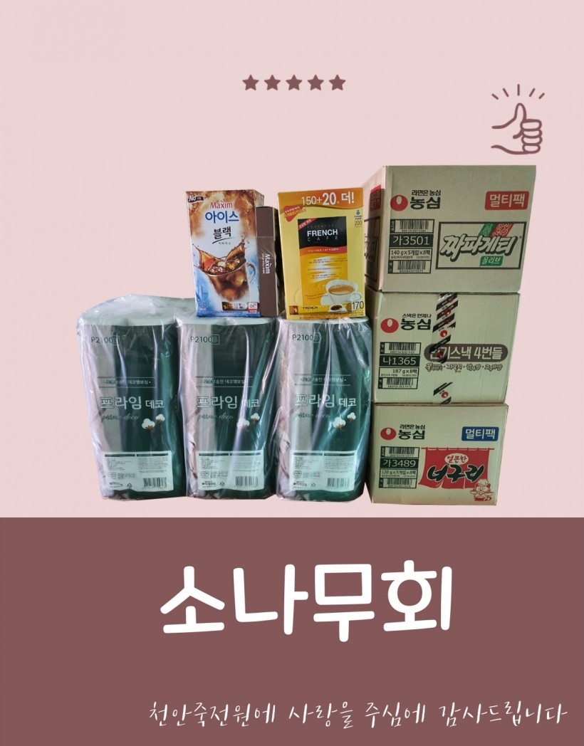 소나무회에서 후원품을 주셨습니다