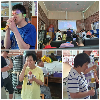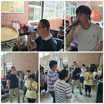 2021.06.12. (13시30분 ~ 16시까지) 날로 날로 더워지고 있는 주말 오후 맛있는 점심식사를 하시고, 노래를 사랑하는 가족들이 모여서 신바람 노래방 프로그램을 하였습니다. 참여하시 모든 가족들이 신나게 노래도 부르고 간식도 드시면서 즐겁게 1주일의 스트레스를 풀며 행복한 오후 시간을 만들었습니다.