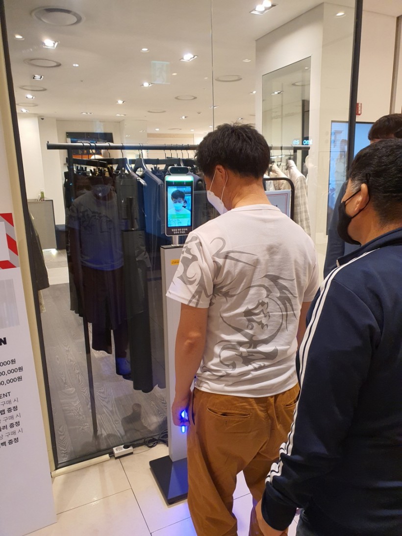 한줄로 서서 체온 측정과 소독은 필수!