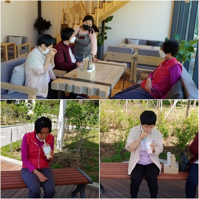 코로나19의 감염 위험은 우리의 일상을 많이 바꿨습니다. 1년여 만에 조심스럽게(방역수칙을 잘 지키며) 미용실 , 외식과 카페 이용을 하고 왔습니다. 오랫만의 외출이라 모두 들뜨고 즐거운 모습입니다. 다음을 기약하며 안전하게 귀원했습니다.