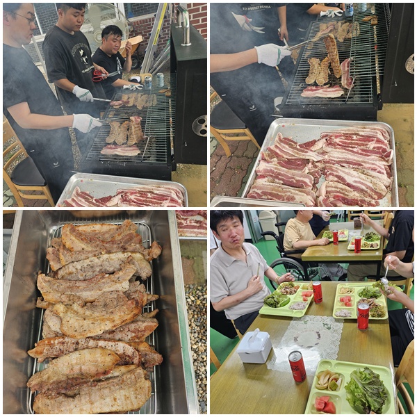 숯불 바베큐 구이 페이지 정보 작성자 김미정 작성일25-08-19 10:33 조회483회 댓글0건 관련링크 목록 본문 천안죽전원 이용자분들의 기력보충을 위해 특별식으로 숯불 바베큐 구이를 제공 하였습니다. 아침부터 쨍쨍 내리쬐는 햇볓에도 숯불을 피어 선생님들께서 직접 고기를 맛있게 구어 주셨습니다. 막바지 더위가 기승을 부리는 요즘 모두 힘을 내어 남은 여름도 건강하게 지내시길 바래 봅니다^^ 댓글목록 등록된 댓글이 없습니다. 목록