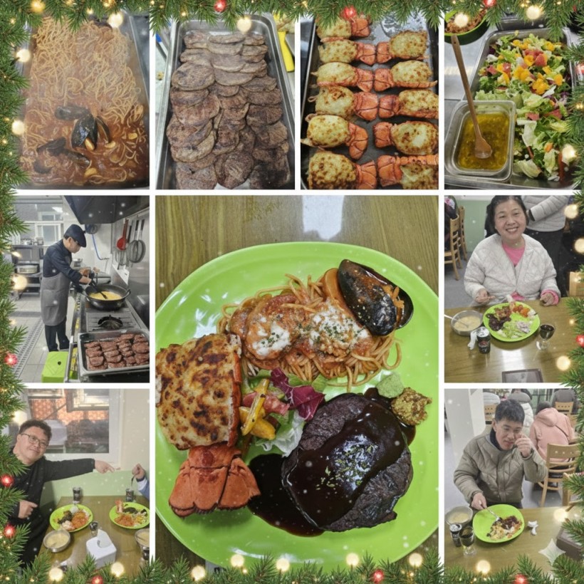 연말 특식 페이지 정보 작성자 김미정 작성일25-12-27 18:30 조회294회 댓글0건 관련링크 목록 본문 연말특식으로 랍스터테일치즈구이와 안심스테이크가 제공 되었습니다.씨제이 쉐프님께서 방문 하셔서 맛있게 음식을 만들어 주셨습니다.맛있는 점심으로 몸과 마음을 재충전하고 천안죽전원 가족들과 직원들 모두 즐거운 점심시간이었습니다. 댓글목록 등록된 댓글이 없습니다. 목록