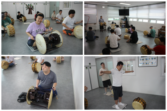 또한 강사가 새로운 장단을 알려주셨는데 여러 번 반복하니 금새 따라하는 모습을 보여 강사도 너무 잘한다고 하시며 칭찬해 주셨습니다.