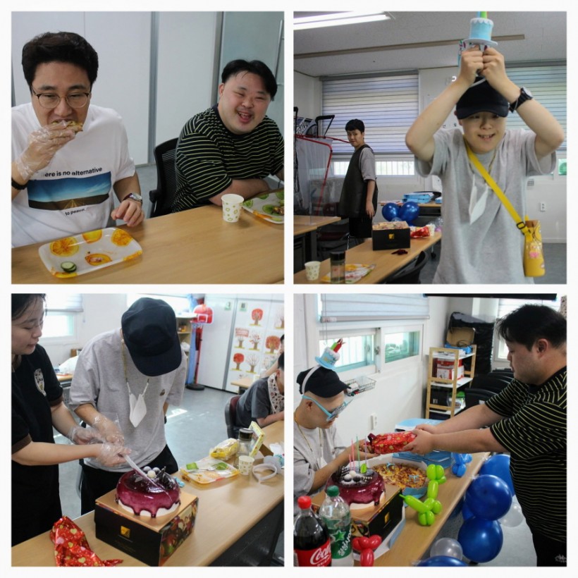 또 생일파티에는 역시 맛있는 음식이 빠질 수 없겠죠? 생일을 맞은 이용인이 가장 먹고 싶어하는 피자와 샴페인, 케이크를 동료들과 나누어 먹고, 생일 영상도 보며 생일파티의 분위기가 한층 업그레이드 되었답니다.