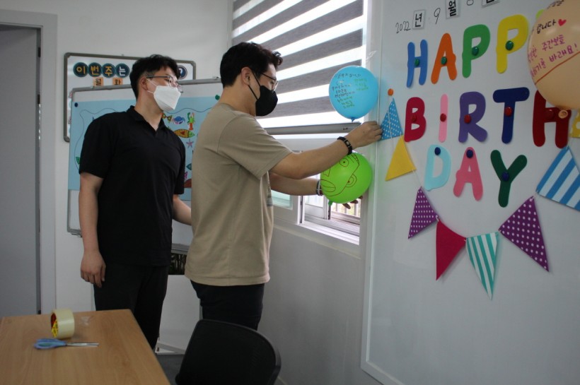 진행하였습니다. 함께 풍선과 가랜드를 붙여주며
