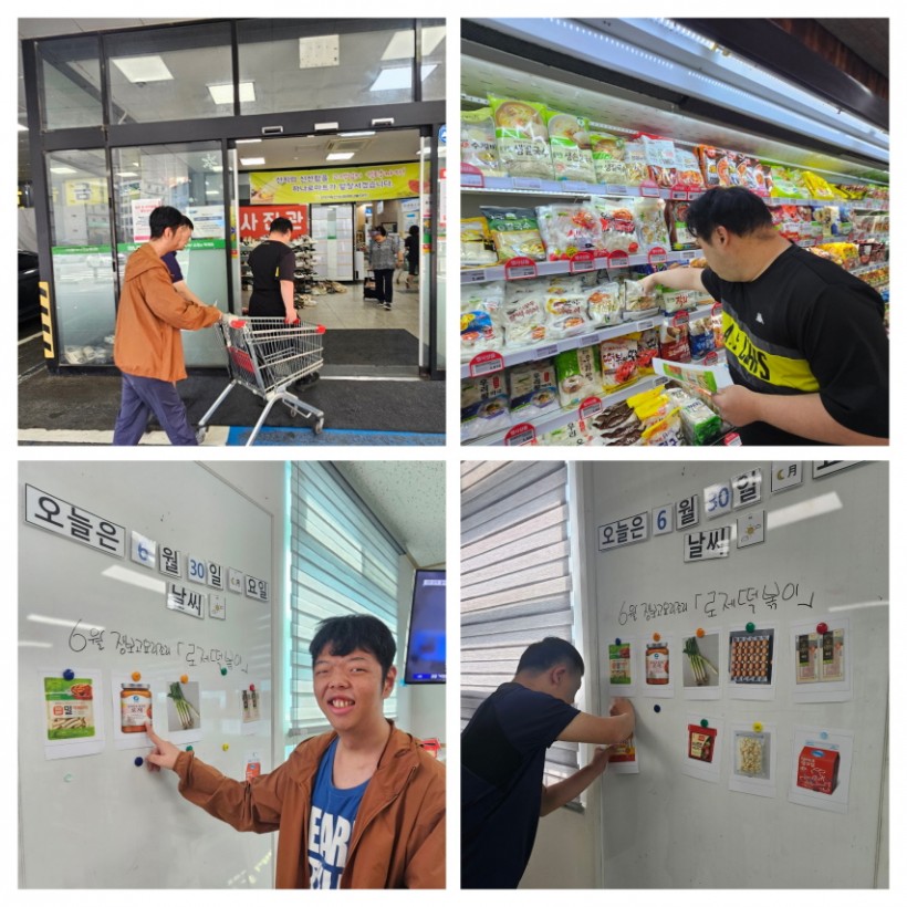 오전에는 다양한 재료 사진을 보고 먹고 싶은 재료를 직접 골라보고 선택한 재료를 들고 근처 마트로 이동하여 사진을 보고 똑같은 재료를 직접 고르고 계산까지 스스로 해보며 성취감을 느꼈습니다.