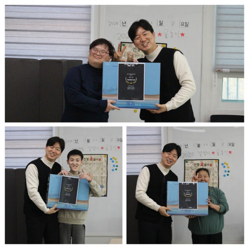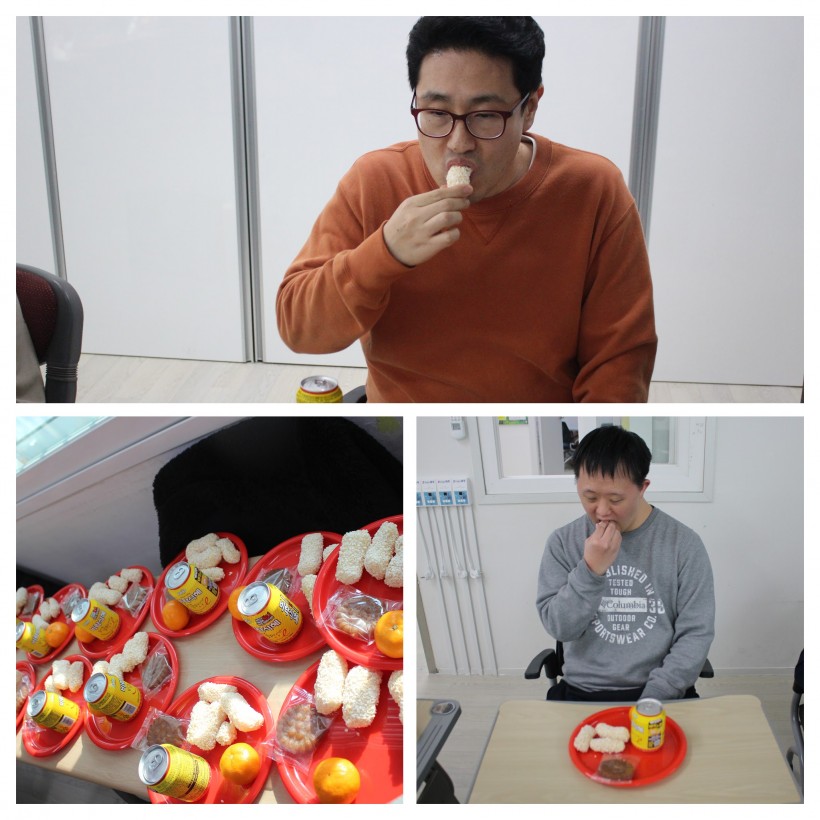 윷놀이 후에는 시상식을 하였는데 수고한 모두에게 가슴에 치명상, 내 마음속 대상 등 재치있는 상과 선물을 주었고, 간식으로 한과와 약과, 식혜를 먹으며 명절행사를 마무리하였습니다.