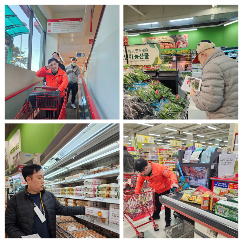 재료를 직접 골라 카트에 담아보고 계산도 해보는 활동을 진행해 보았는데 대부분의 이용인이 어렵지 않게 재료를 찾는 모습을 보였습니다.