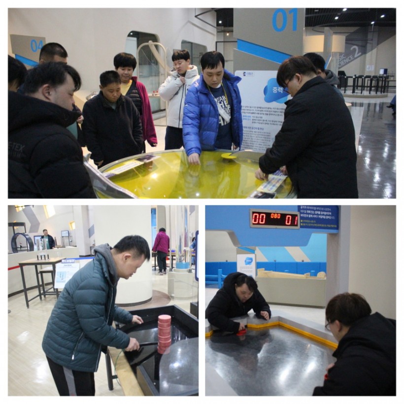 과학교육원안에는 기초과학관, 생명지구환경관, 첨담융합과학원등 과학의 원리를 활용한 다양한 체험도구가 많이 구비되어 있어 순서를 기다리지 않고도 여러가지 체험을 할 수 있어 만족해 하는 모습을 보였고, 과학의 원리를 활용한 게임도구도 많아 동료들과 즐겁게 게임에 참여하였습니다.