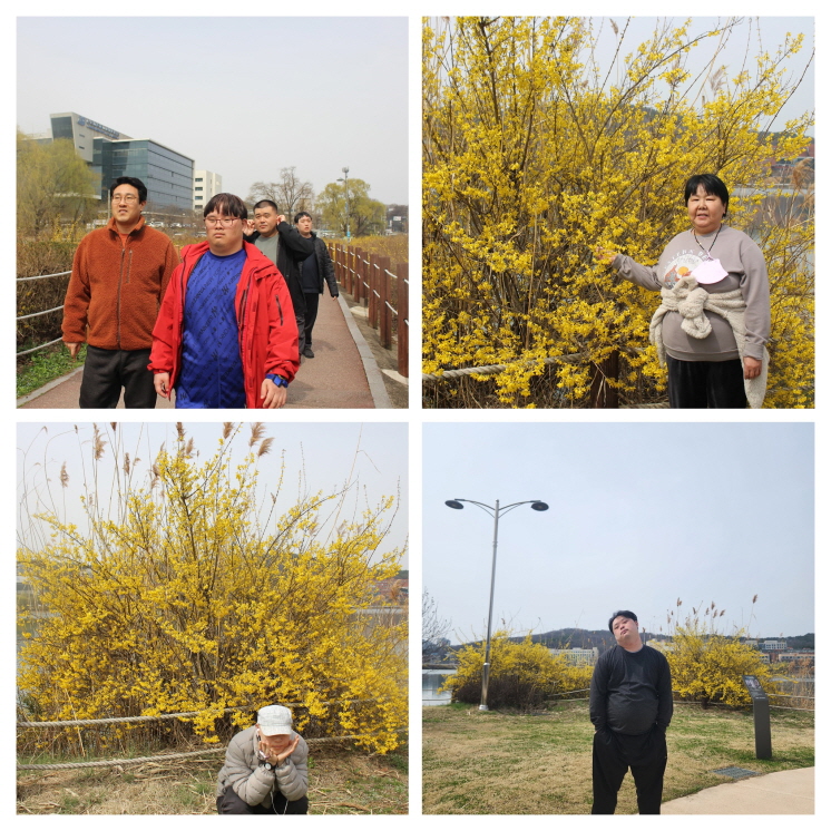 따뜻한 햇살을 받으며 산책도 하고, 곳곳에 피어있는 개나리도 감상하며 봄이 온 것을 실감할 수 있었고, 벤치에 앉아 동료들과 도란도란 이야기를 나누며 힐링 하는 시간을 보냈습니다.