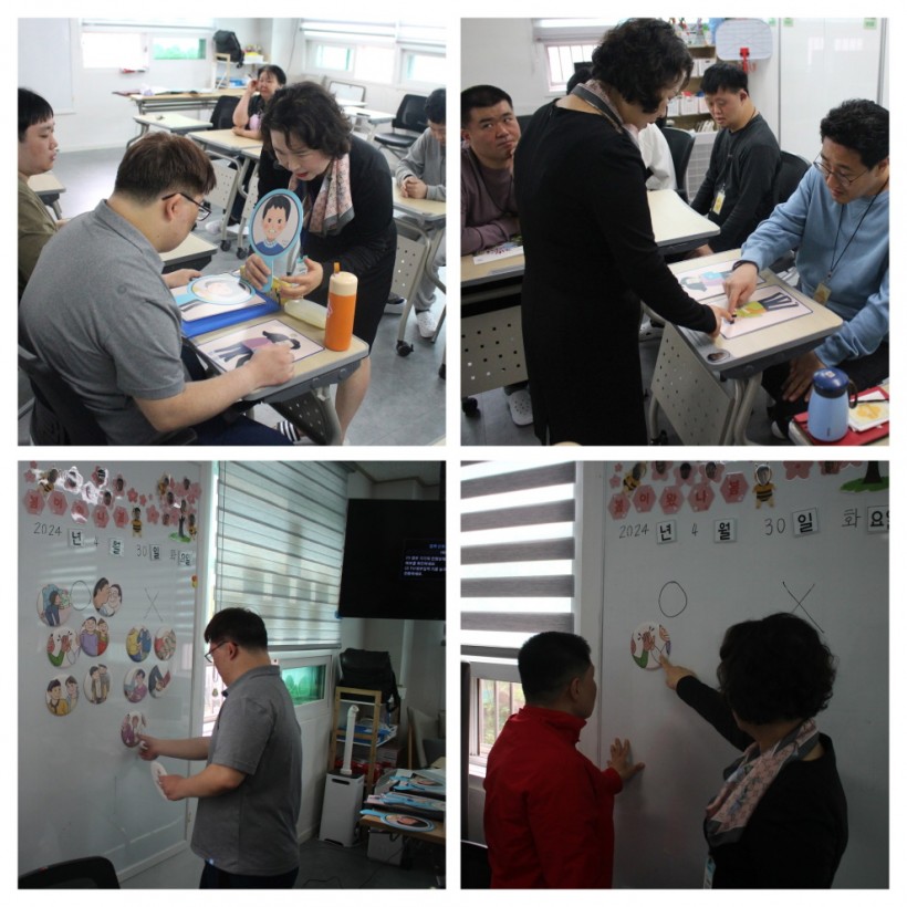 이번 안전 교욱은 특별히 천안장애인성폭력상담소에 근무하는 선생님이 직접 센터에 방문하여 교육을 진행해 주셨고, 단순히 말로만 교육을 진행하는 것이 아니라 우리의 몸이 얼마나 소증한지, 다른사람의 몸을 만지면 왜 안되는지를 그림카드를 이용해 개인별로 설명해 주셔서 교육을 듣는 이용인이 평소보다 집중하여 교육에 참여하며 만족하는 모습을 보였습니다.