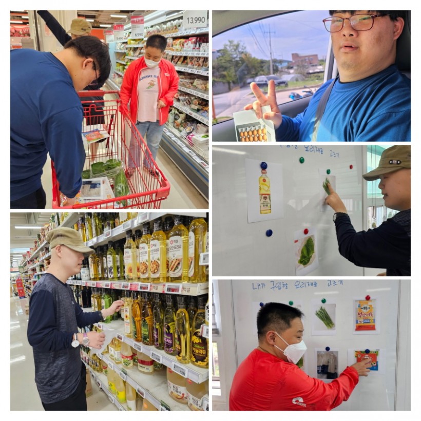 요리활동을 하기 전 오전 활동으로 마트에서 구입하고 싶은 요리재료를 사진을 보고 직접 선택해 보고, 선택한 요리재료를 마트에 방문해 직접 구매해 보는 활동을 진행하였는데 능숙하게 사진과 같은 재료를 골라 장바구니에 넣고 뿌듯해 하는 모습을 보였습니다.